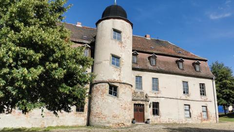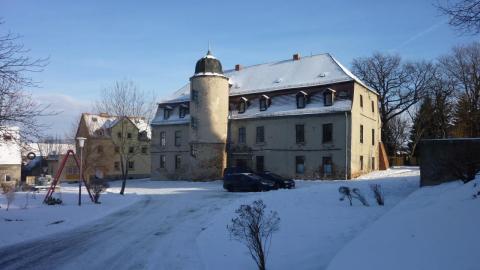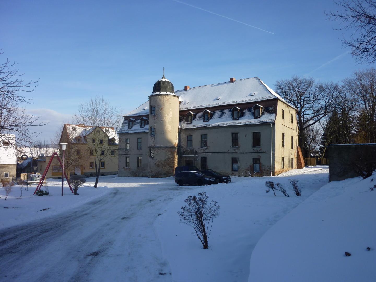 Das Schloss wurde 1512 von Rudolph von Bünau erbaut. Aus dieser Zeit stammt unter anderem der markante runde Treppenturm. Im Barockzeitalter (1721) wurde das Gebäude größtenteils von der Familie Berlepsch umgebaut. Die heutige Fassade mit den hohen, symmetrischen Fenstern und den Räumen im ersten Stock stammt aus dieser Epoche. Im Laufe der Jahrhunderte lebten 13 Adelsfamilien in dem Gebäude. Nach dem Zweiten Weltkrieg wurde das Schloss verstaatlicht. Zunächst diente es als Unterkunft für 52 deutsche Flüchtlinge aus Schlesien. Später, in der DDR-Zeit, wurde es für verschiedene Gemeindefunktionen genutzt: Rathaus, Kindergarten, Freiwillige Feuerwehr, Arztpraxis, Jugendclub, Bibliothek und mehr. Diese vielseitige Nutzung hat ihre Spuren hinterlassen. Im Laufe der Jahre wurde viel am Gebäude verändert, doch glücklicherweise sind viele authentische Elemente erhalten geblieben, wie beispielsweise die stattliche Halle im ersten Stock mit dem Eichenholzboden und den hohen, imposanten Türen.