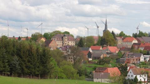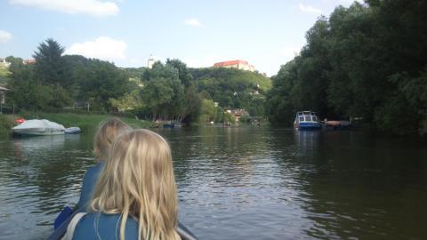 Das Dorf mit 500 Einwohnern wurde gegen einen steilen Hang gebaut. Das Schloss liegt obenan und bildet das Herz des Dorfes. Sie laufen entlang eines pittoresken Flüsschens den Hang hinab und für einen kürzeren oder längeren Spaziergang in das Tal hinein. Kinder können eigenständig ins Tal gehen, da das Dorf so gut wie autofrei ist.